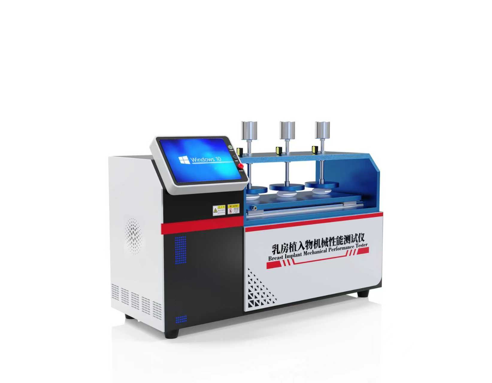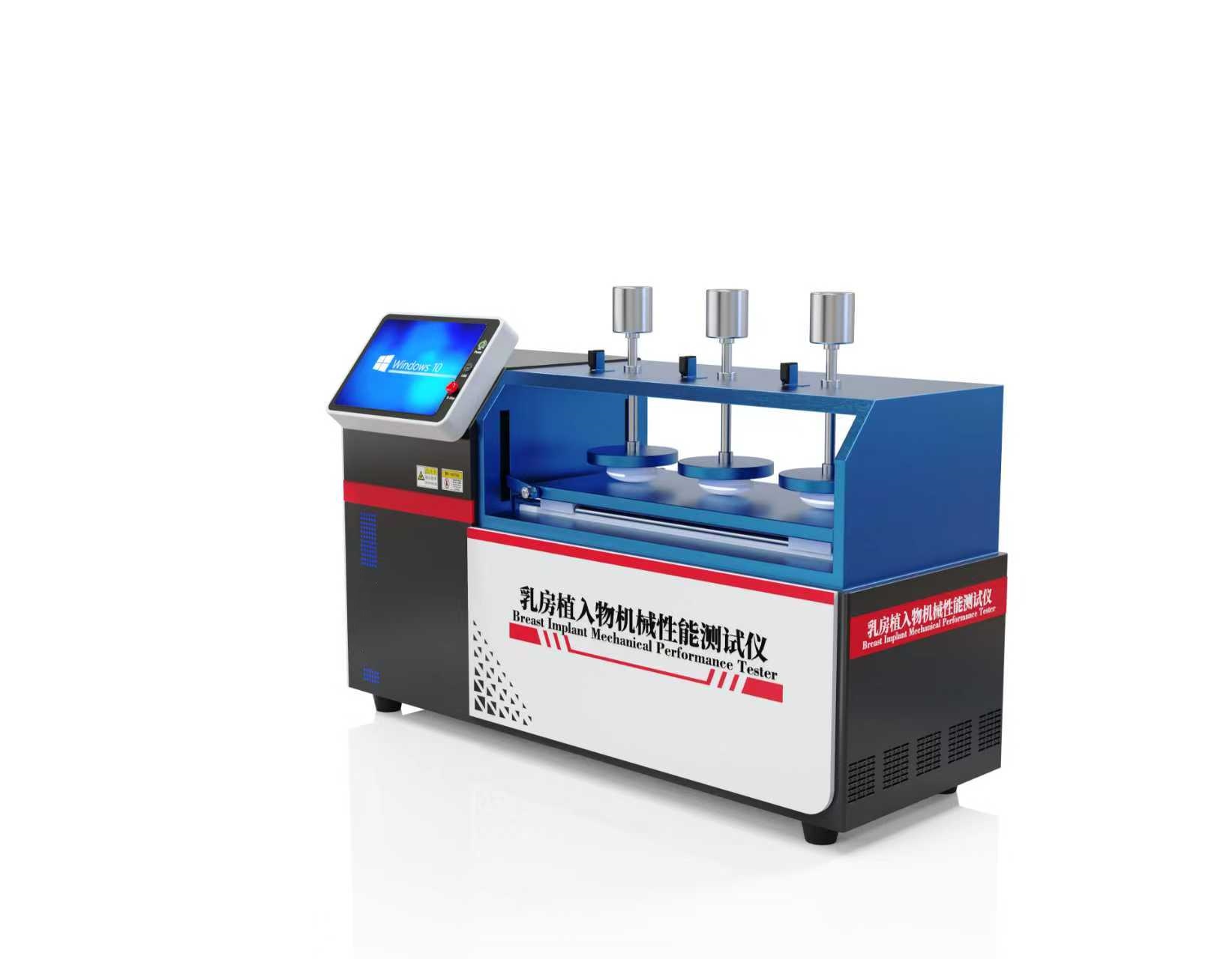 高配版乳房植入物机械性能测试仪是专为评估乳房植入物(如硅胶假体、盐水假体、结构化植入物等)在动态和静态条件下的机械性能而设计的精密医疗设备。其核心功能是通过模拟人体运动与力学环境,对植入物的强度、弹性、耐久性、抗撕裂性等关键指标进行量化分析,确保其符合国际安全标准,降低术后并发症风险,保障患者安全。