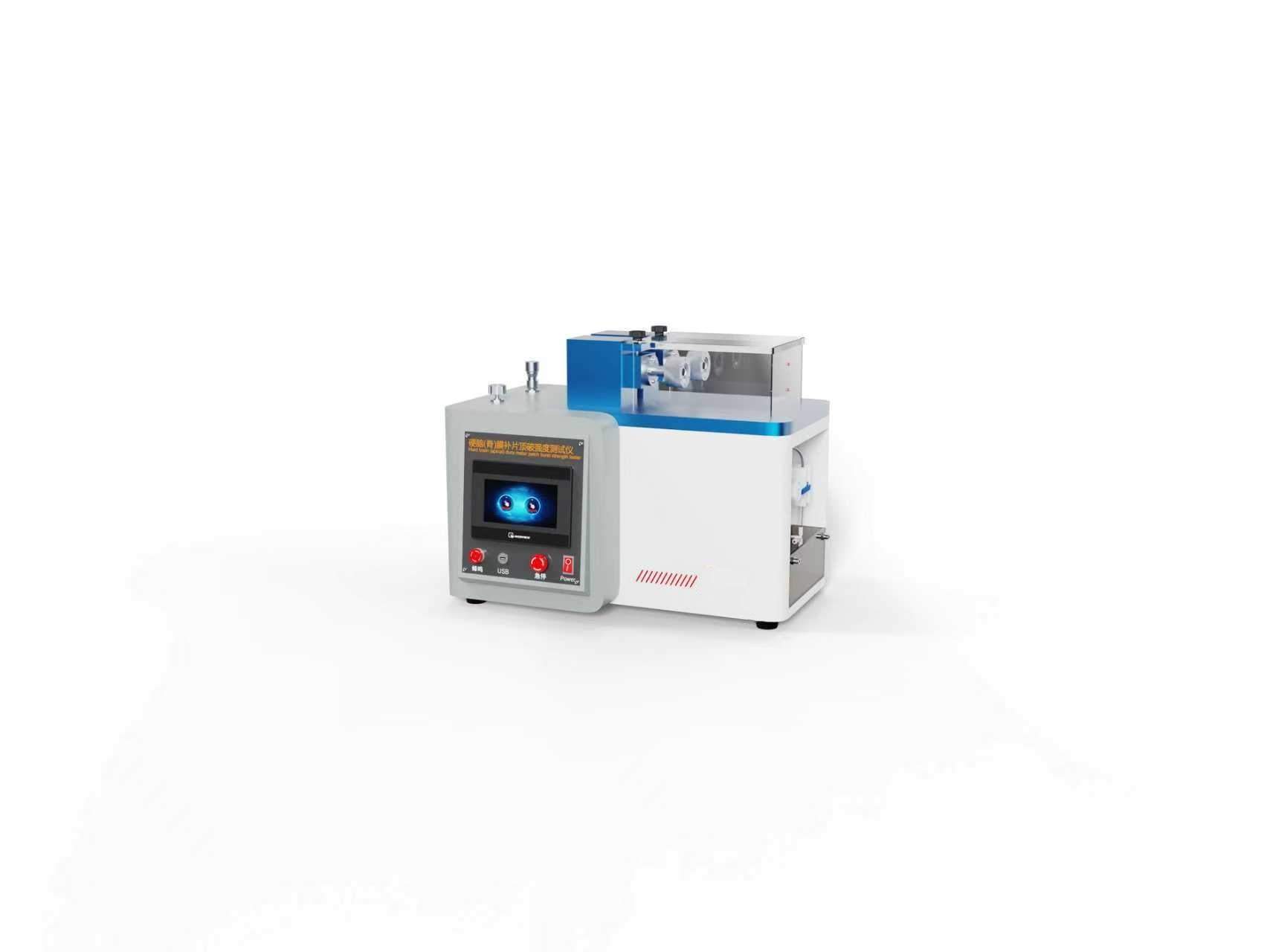 气压法:将补片夹在可延伸膜片上,膜片下方施加气压使其膨胀,直至补片破裂,记录破裂瞬间的压力值。